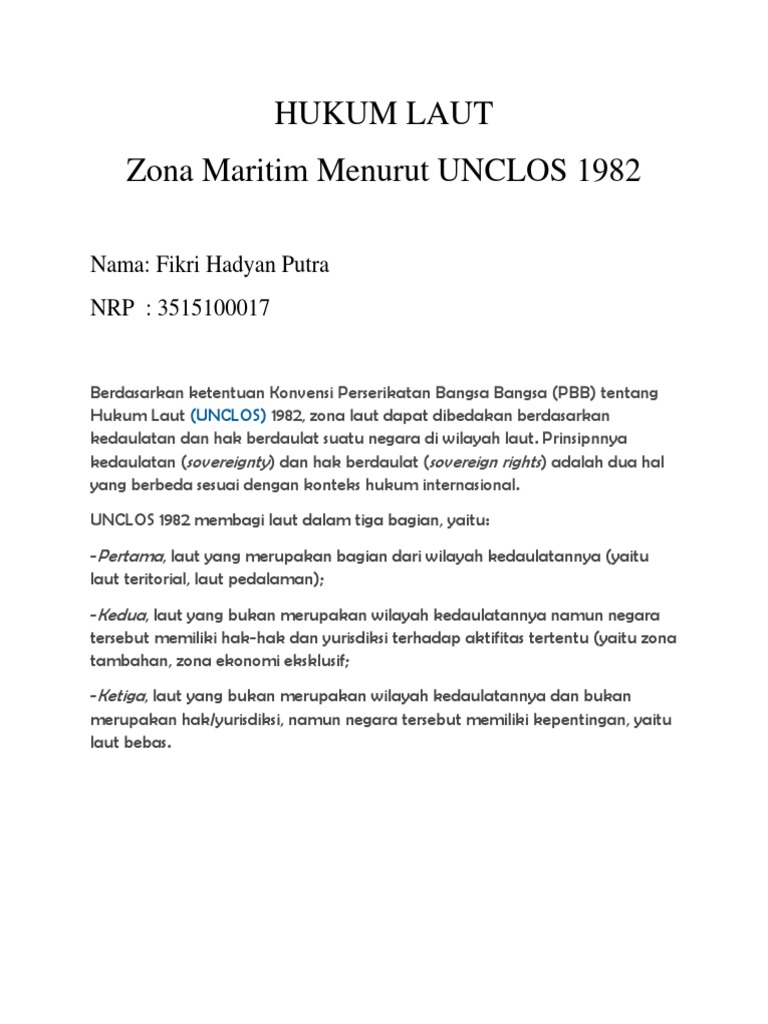 Pada rezim wilayah laut ini negara mempunyai yuritiksi untuk menetapkan dan melaksanakan hukum dinegaranya sama seperti rezim wilayah kepualaun. The world and vietnam report. Wilayah laut terbagi atas wilayah yang dikuasai oleh suatu negara (negara pantai) dengan laut tidak hak lintas damai adalah menurut konvensi hukum laut 1982 adalah hak untuk melintas ketentuan ini jelas bertentangan dengan unclos 1982 yang sama sekali tidak memberikan hak. Bajak laut dalam hukum internasional dikenal dengan piracy, yang diatur dalam united nations convention on the law of the sea (unclos) yang adapun yang dimaksud dengan pembajakan di laut menurut unclos adalah:1. Hal ini sangat merugikan persatuan dan kesatuan negara republik. Adalah united nations convention on the law of the sea 1982 (unclos. Setiap tindakan kekerasan atau penahanan yang tidak sah, atau. Posted on 18.11 by unknown. Soal hukum laut internasional 1. Rezim wilayah laut menurut unclos 1982. Berdasarkan ketentuan konvensi perserikatan bangsa bangsa (pbb) tentang hukum laut (unclos) 1982 kedaulatan adalah kewenangan penuh atas wilayah (territory) yang dalam hal ini meliputi semua wilayah daratan, perairan kepulauan dan laut territorial (lihat gambar 1 pembagian zona. Laut territorial menurut hukum laut internasional maupun nasional adalah sebagai berikut. Menurut pasal 49 unclos 1982 yang dimaksud dengan perairan kepulauan adalah perairan yang dilingkupi.